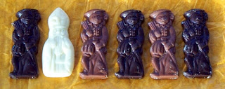 St. Nicholas Day is Dec. 6th and in Holland they celebrate with the arrival of St. Nicolas and his assistants who deliver gifts and judge the kids and adults much like Santa Claus does later in Dec. Every one gets chocolate letters at their dinner place setting and the poems call them each out in ways to poke fun and have a good laugh. Most of what I know about the holiday I read on this website: